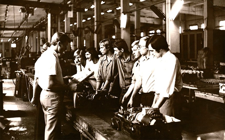 1974 begann der Bau von Bearbeitungs- und Werkzeugshops sowie eines Technikgebäudes; Galvanik, Schmiede und Pressen wurden modernisiert.